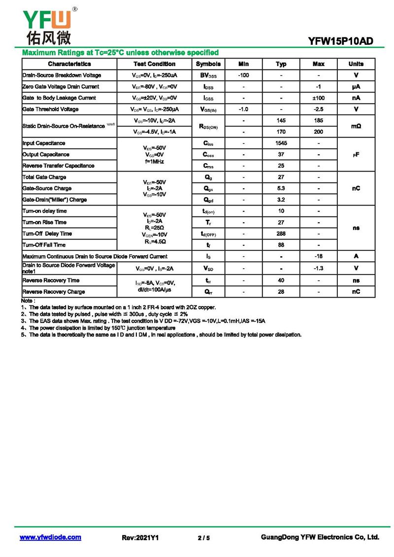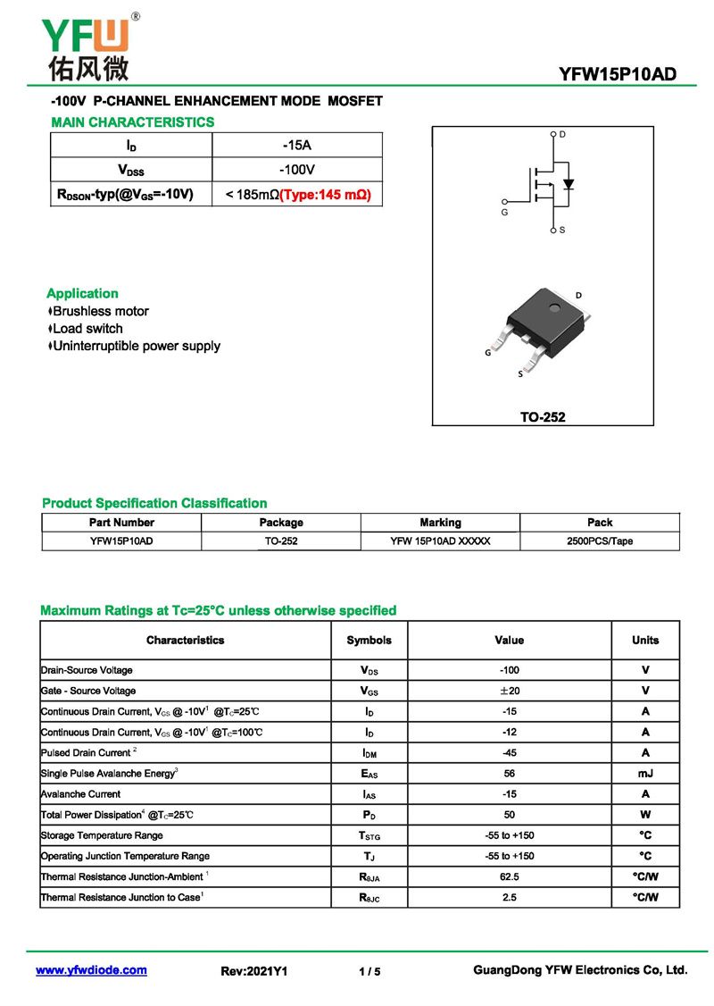 場效應管YFW15P10AD 規格書_價格_PDF手冊-廣東佑風微原廠YFW15P10AD TO-252_(YFW佑風微)品牌
