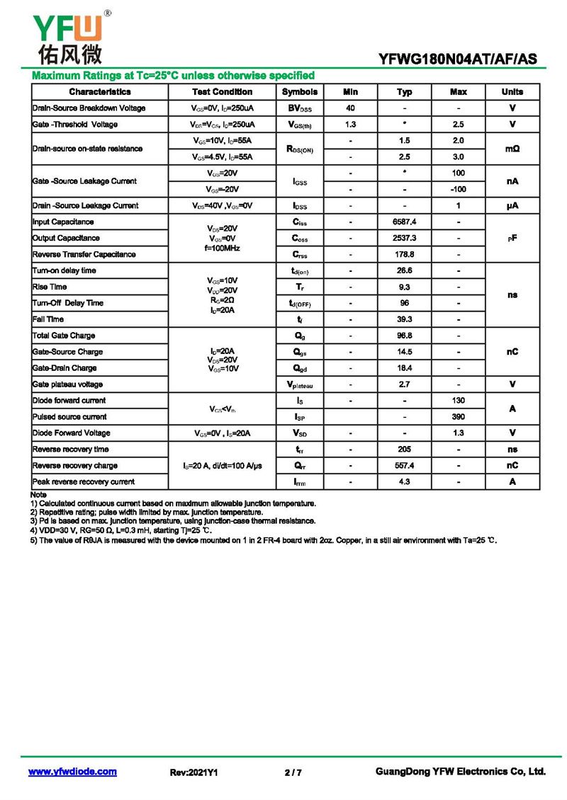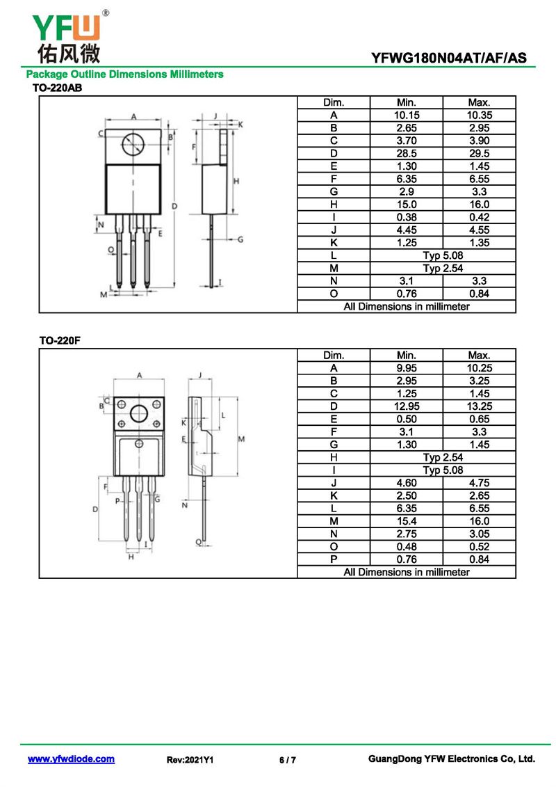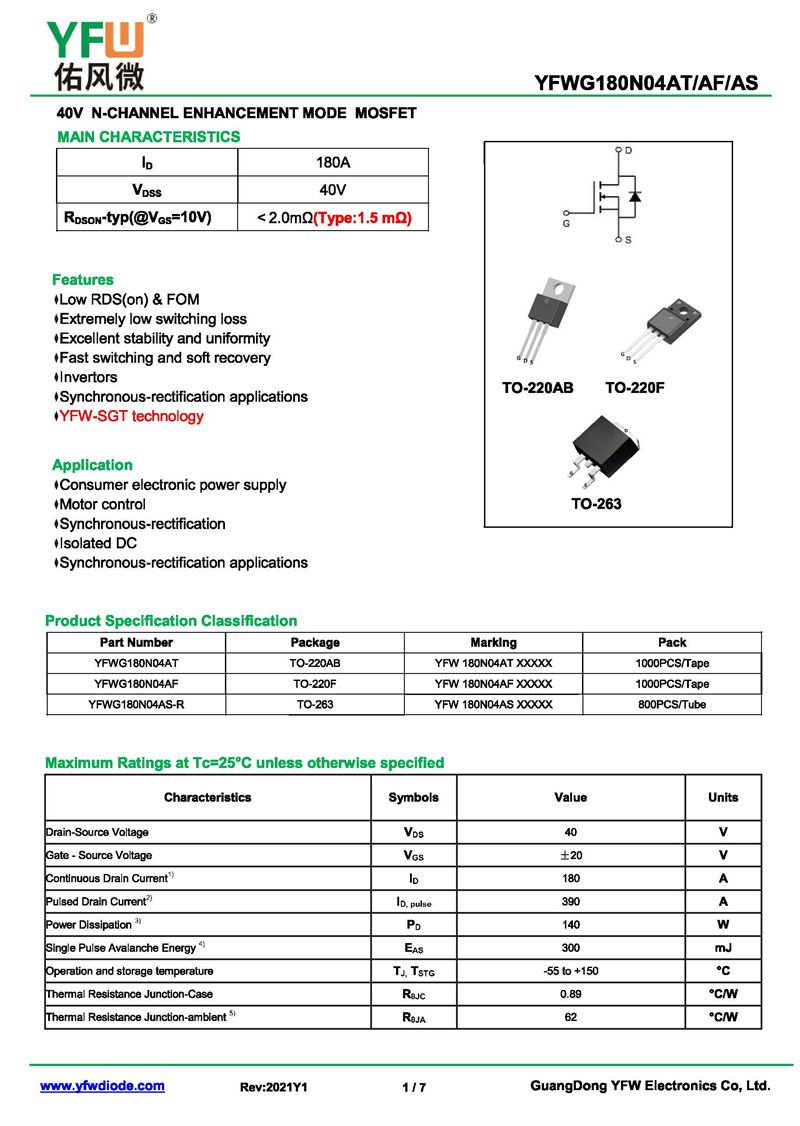 場效應(yīng)管YFWG180N04AT 規(guī)格書_價(jià)格_PDF手冊(cè)-廣東佑風(fēng)微原廠YFWG180N04AT TO-220AB _(YFW佑風(fēng)微)品牌