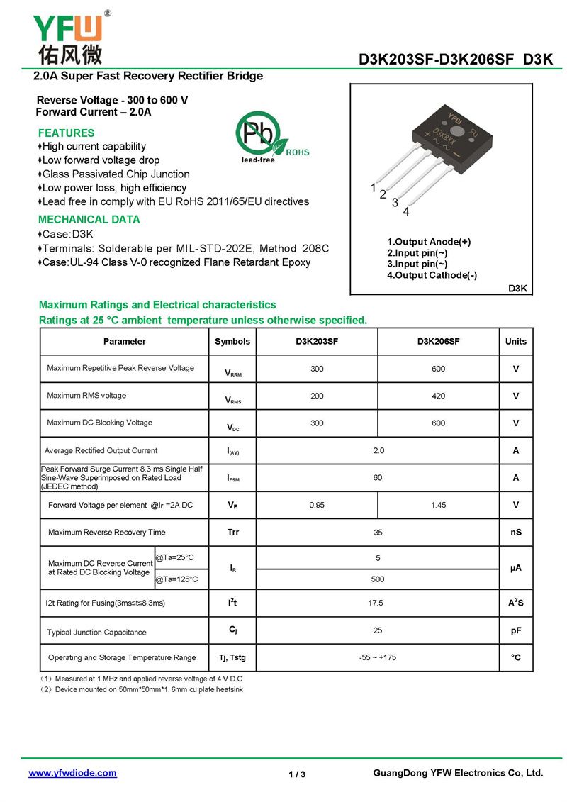 橋式整流器D3K203SF 規(guī)格書_價(jià)格_PDF手冊(cè)-廣東佑風(fēng)微原廠D3K203SF D3K(YFW佑風(fēng)微)品牌