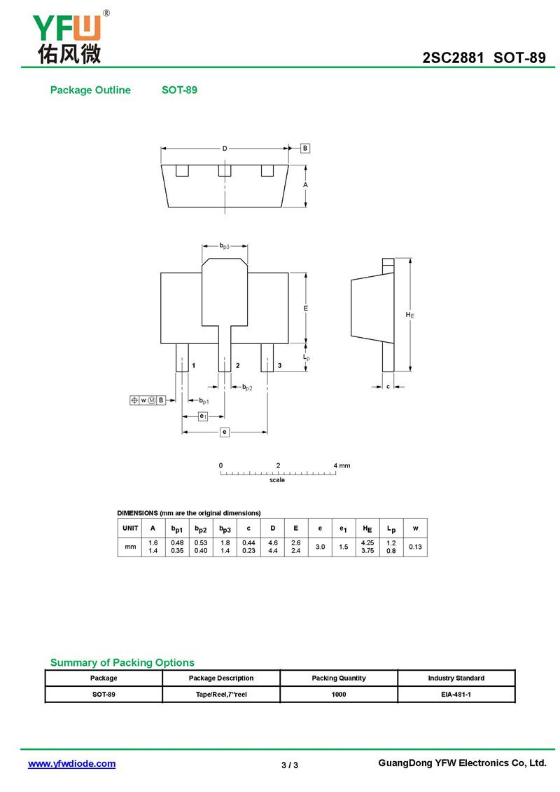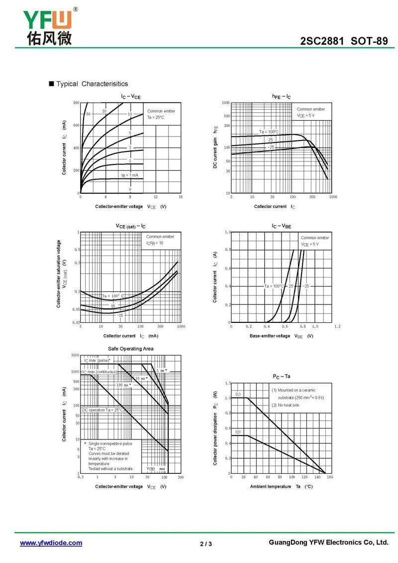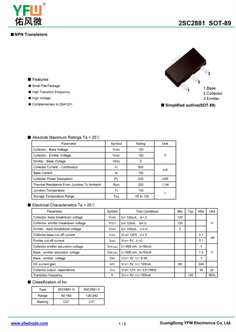 晶體管2SC2881 規格書_價格_PDF手冊-廣東佑風微原廠2SC2881 SOT-89_(YFW佑風微)品牌
