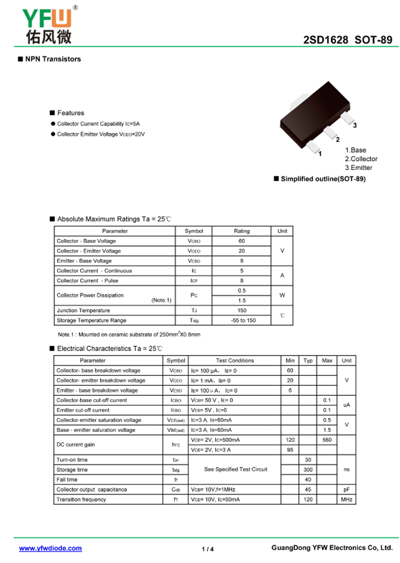 晶體管2SD1628 規(guī)格書_價(jià)格_PDF手冊(cè)-廣東佑風(fēng)微原廠2SD1628 SOT-89_(YFW佑風(fēng)微)品牌