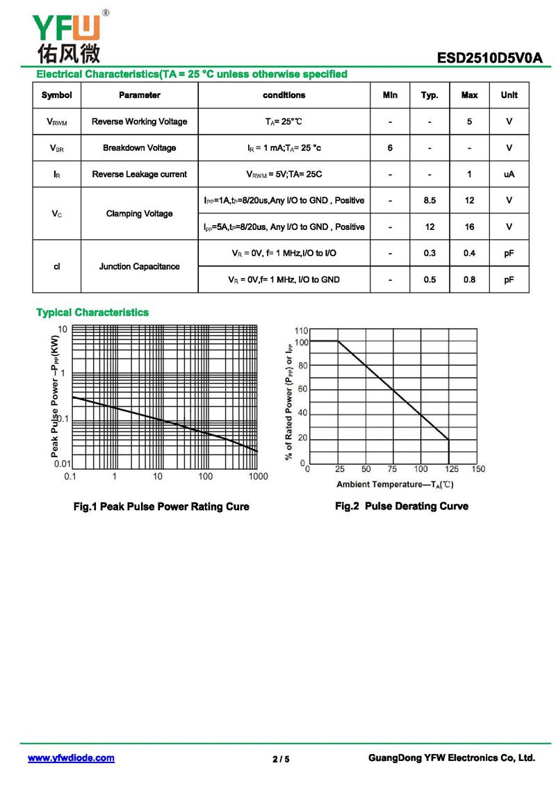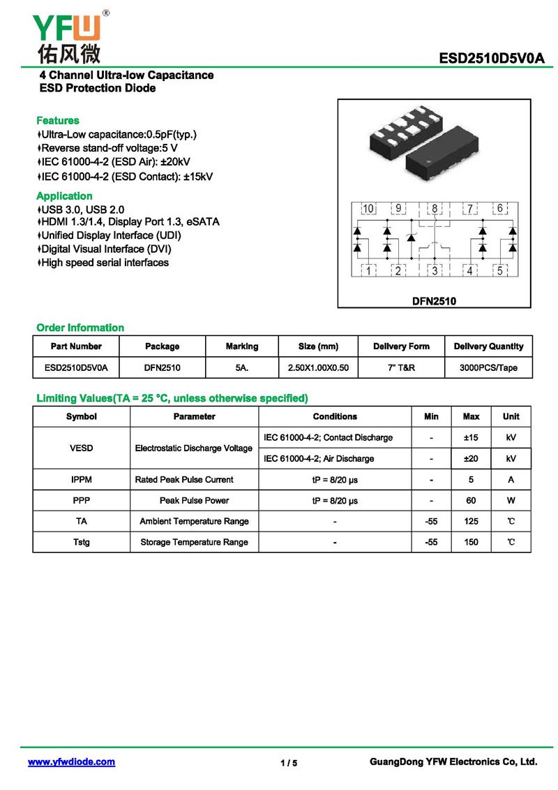 靜電保護二極管ESD2510D5V0A 規格書_價格_PDF手冊-廣東佑風微原廠ESD2510D5V0A DFN2510_(YFW佑風微)品牌