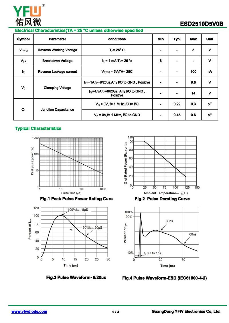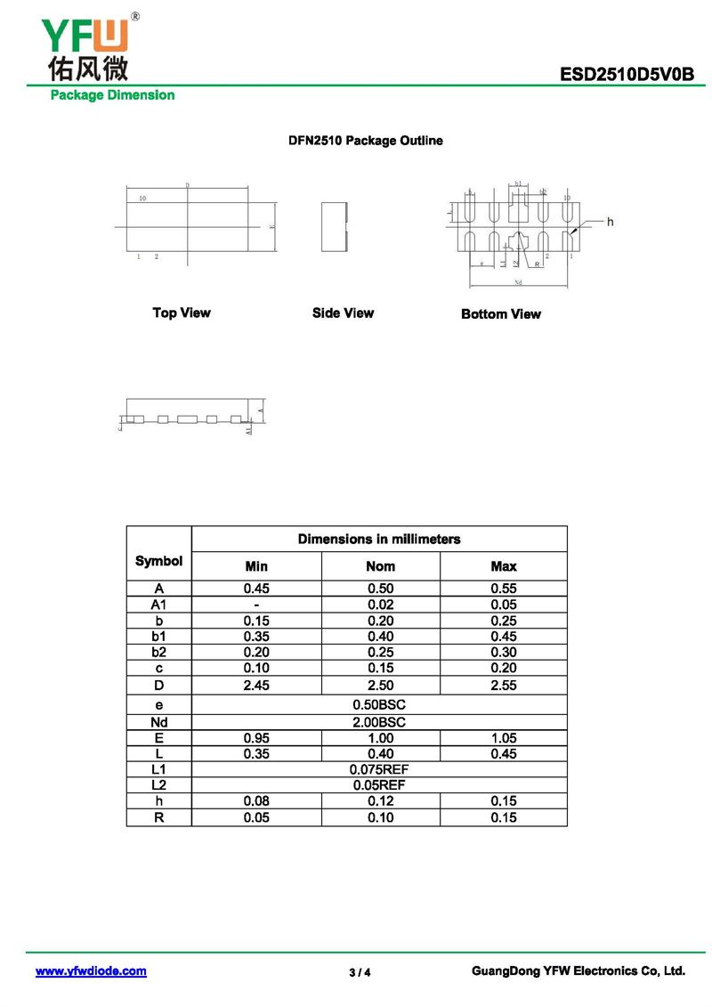 靜電保護(hù)二極管ESD2510D5V0B 規(guī)格書_價(jià)格_PDF手冊-廣東佑風(fēng)微原廠ESD2510D5V0B DFN2510_(YFW佑風(fēng)微)品牌