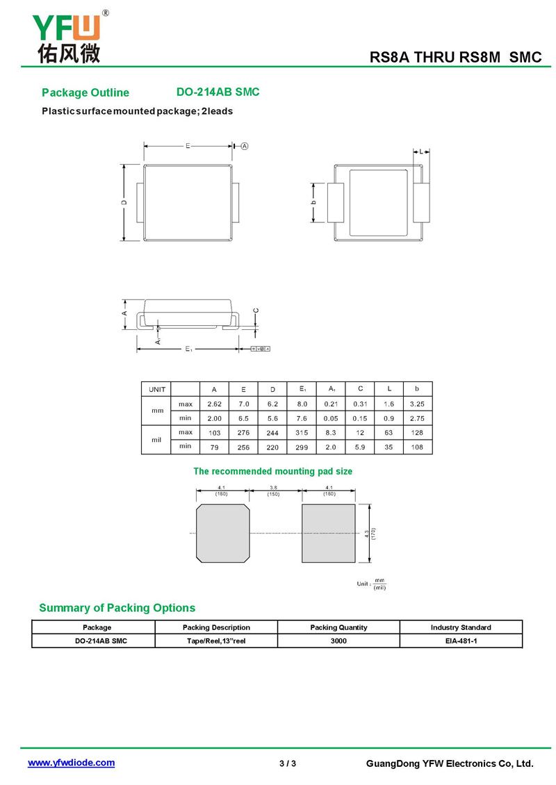 快恢復(fù)二極管RS8G 規(guī)格書_價(jià)格_PDF手冊(cè)-廣東佑風(fēng)微原廠RS8G SMC_(YFW佑風(fēng)微)品牌