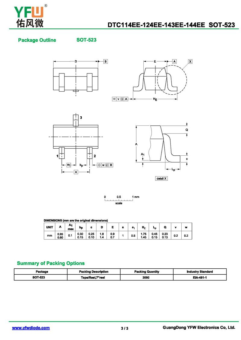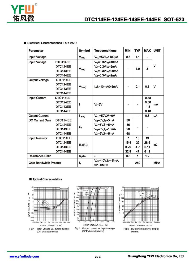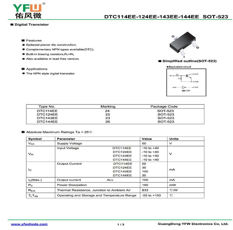 數字晶體管DTC114EE 規格書_價格_PDF手冊-廣東佑風微原廠DTC114EE SOT-523_(YFW佑風微)品牌