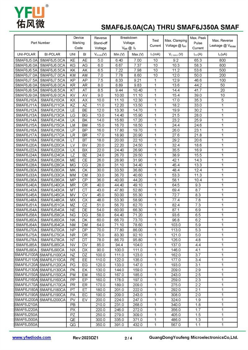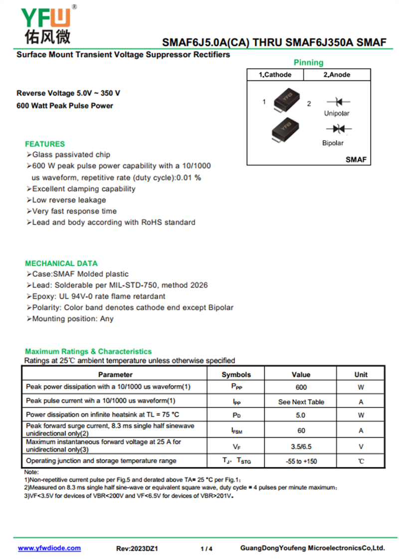 瞬態抑制二極管P4SMAFJ170A-P4SMAFJ170CA 規格書_價格_PDF手冊-廣東佑風微原廠P4SMAFJ170A-P4SMAFJ170CA SMAF_(YFW佑風微)品牌